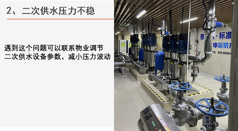 如果是住在高樓層的住戶,遇到這個問題可以聯系物業調節二次供水設備參數增加水壓,或聯系當地的自來水公司詢問是否